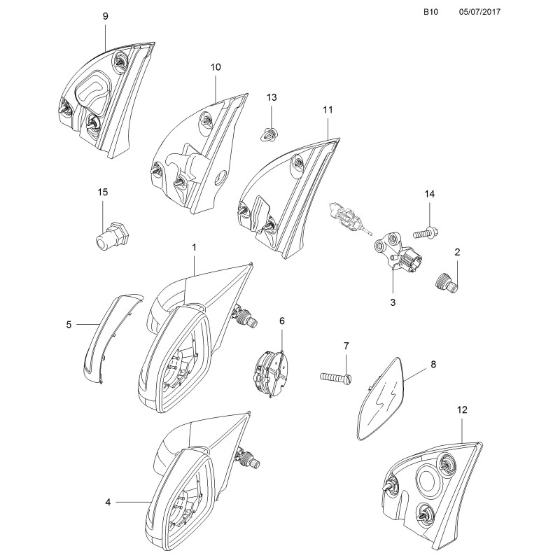 SPIEGEL, KOMPL., AUSSENSPIEGEL, AUSSER MOTOR UND GLAS, LINKS-LENKUNG LINKS (AUSSER CHINA)