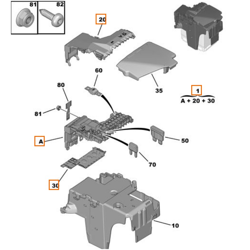 Onderdelen 20, A en 30 van de foto